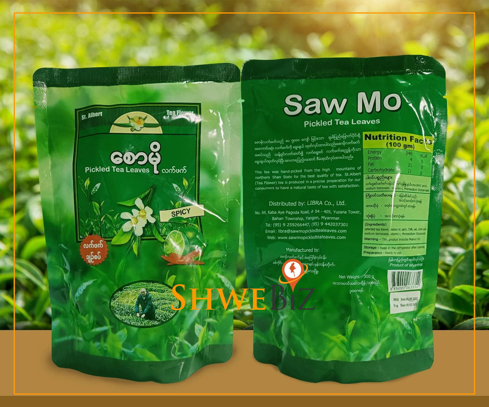 လက်ဖက်မှာဆိုရင်တော့ စားလို့လည်းကောင်း၊ သဘာ၀လက်ဖက်အညွန့်တွေကို ရွေးချယ်သန့်စင်ပြီး ကျန်းမာရေးနဲ့အညီ လတ်ဆတ်သန့်ရှင်းစွာ ထုတ်လုပ်ထားတဲ့ စောမို Premium Quality လက်ဖက်ဖြစ်ပါတယ်။ အစပ်အရသာနဲ့ အဆိမ့်အရသာ ဆိုပြီး ၂ မျိုး ရှိပါတယ်။ ဝါတွင်း သက်သတ်လွတ်စားသုံးသူများလည်း သုံးဆောင်နိုင်ပါတယ်။